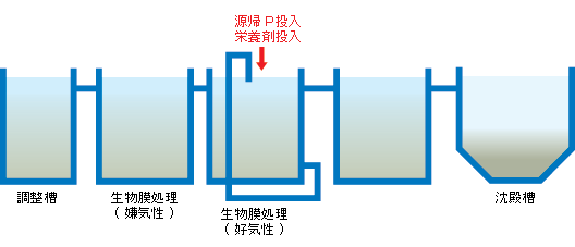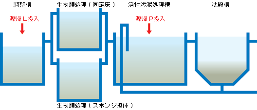 | 処理方法 | 生物膜処理(固定床、流動担体)→ 活性汚泥法 | |||||