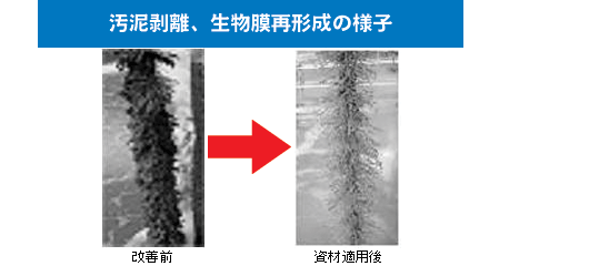 ・生物膜処理の劇的改善(生物膜の肥大嫌気化解消、発泡激減)
