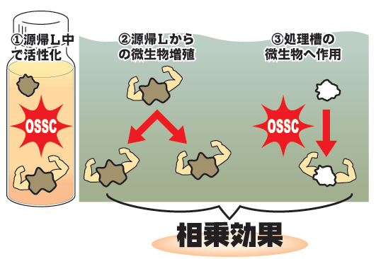 源帰 Lの効果発現は、微生物菌体と、OSSCとの相乗作用による。